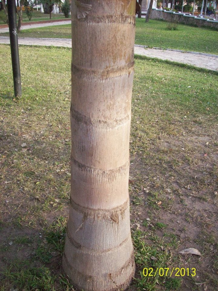 estípite liso, con cicatrices foliares incompletas.