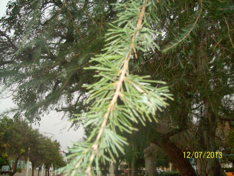 Hojas: aciculares, más cortas que las del pino y en más cantidad, sobre braquiblastos, con cara superior plana e inferior en ángulo.